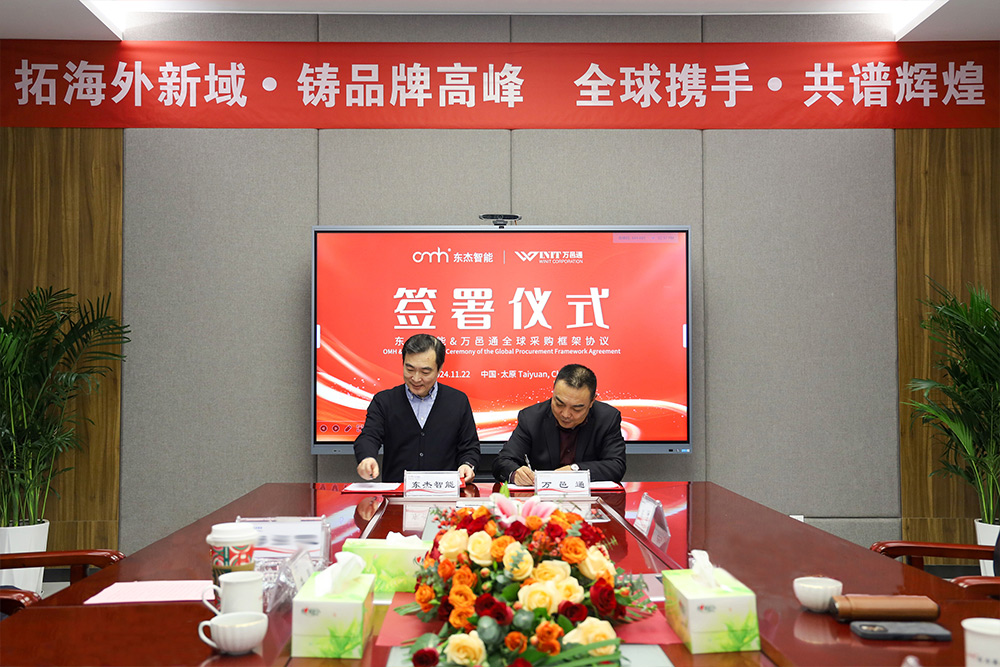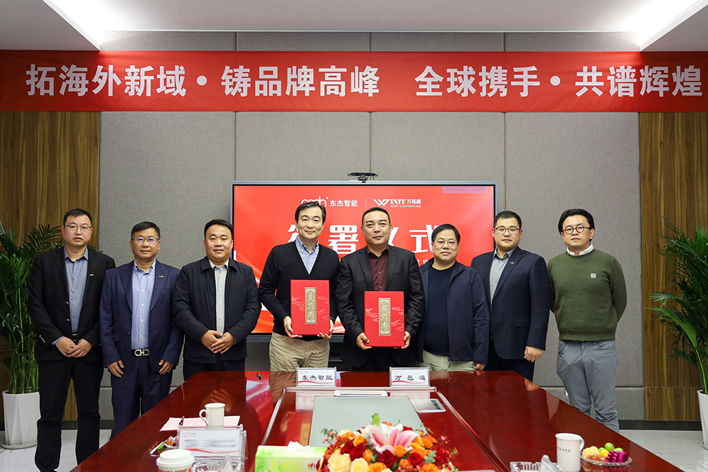 簽署儀式上,雙方代表在熱烈的掌聲中完成了合同簽署,并合影留念。這次簽署儀式的成功舉行,標志著東杰智能與萬邑通的合作進入新階段,也為雙方未來在更多領域的合作奠定了堅實的基礎。