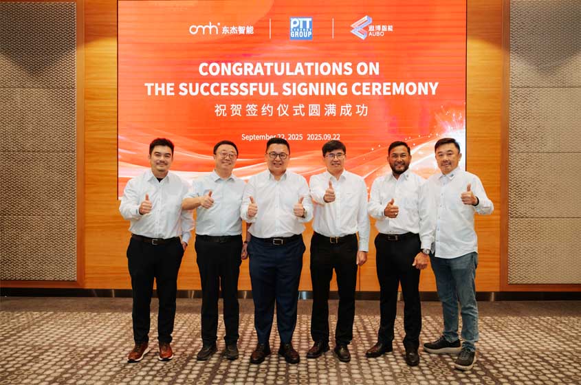 在各方見證下,東杰智能董事長韓永光、遨博智能董事長魏洪興與PTT集團董事總經(jīng)理Teo Swee Phin共同簽署協(xié)議。